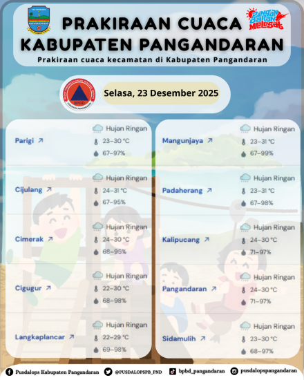 Demikian Laporan Harian Pusdalops PB Kabupaten Pangandaran.