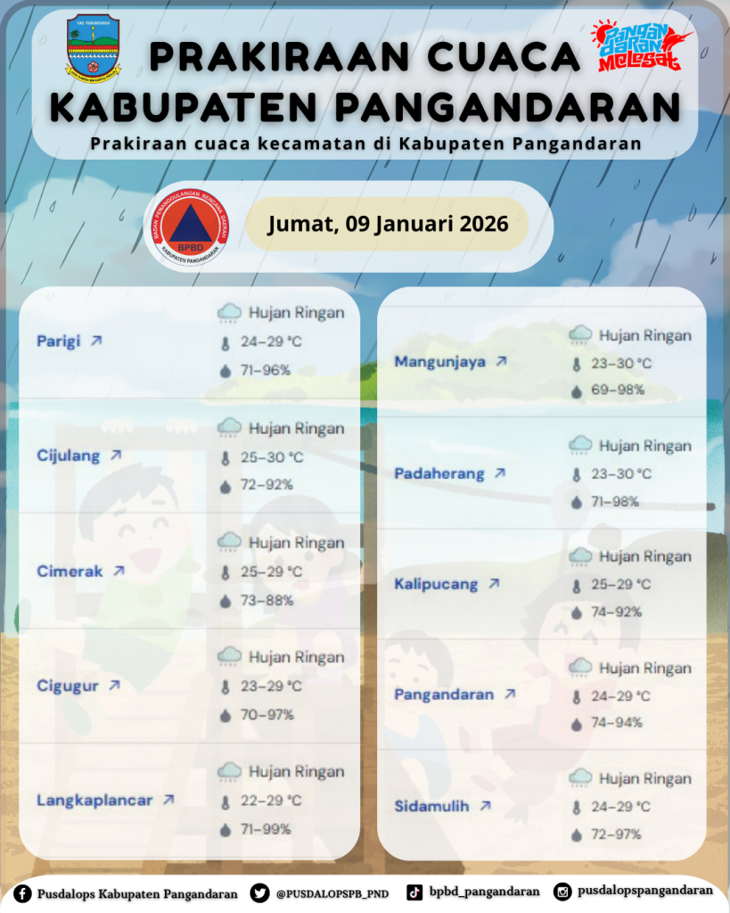 LAPORAN HARIAN PUSDALOPS PB – BPBD KAB. PANGANDARAN – JUMAT, 9 JANUARI 2026