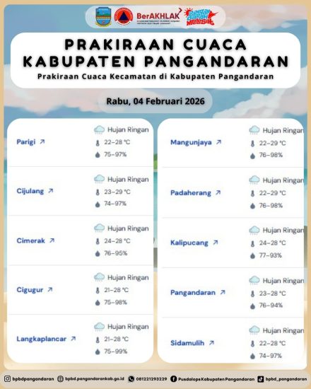 – Pangandaran : Hujan Ringan, 🌡️23–28 °C,💧76–94%