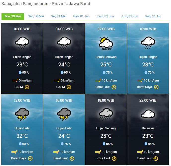 Laporan Harian & Prakiraan Cuaca Kabupaten Pangandaran – Minggu, 29 Mei 2022