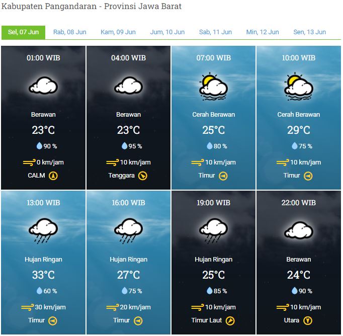 Laporan Harian & Prakiraan Cuaca Kabupaten Pangandaran – Selasa, 7 Juni 2022