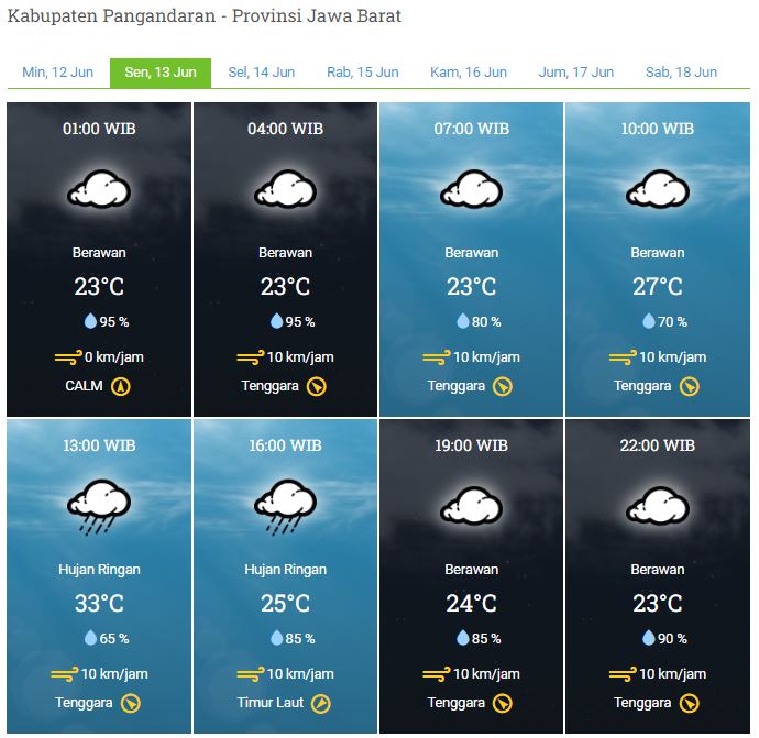 Laporan Harian & Prakiraan Cuaca Kabupaten Pangandaran – Senin, 13 Juni 2022