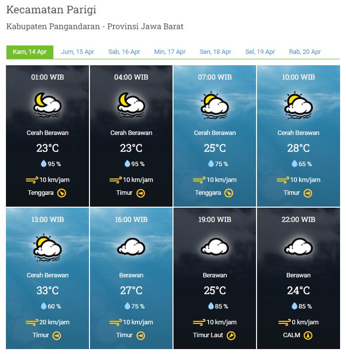 Laporan Harian & Prakiraan Cuaca Kabupaten Pangandaran – Kamis, 14 April 2022