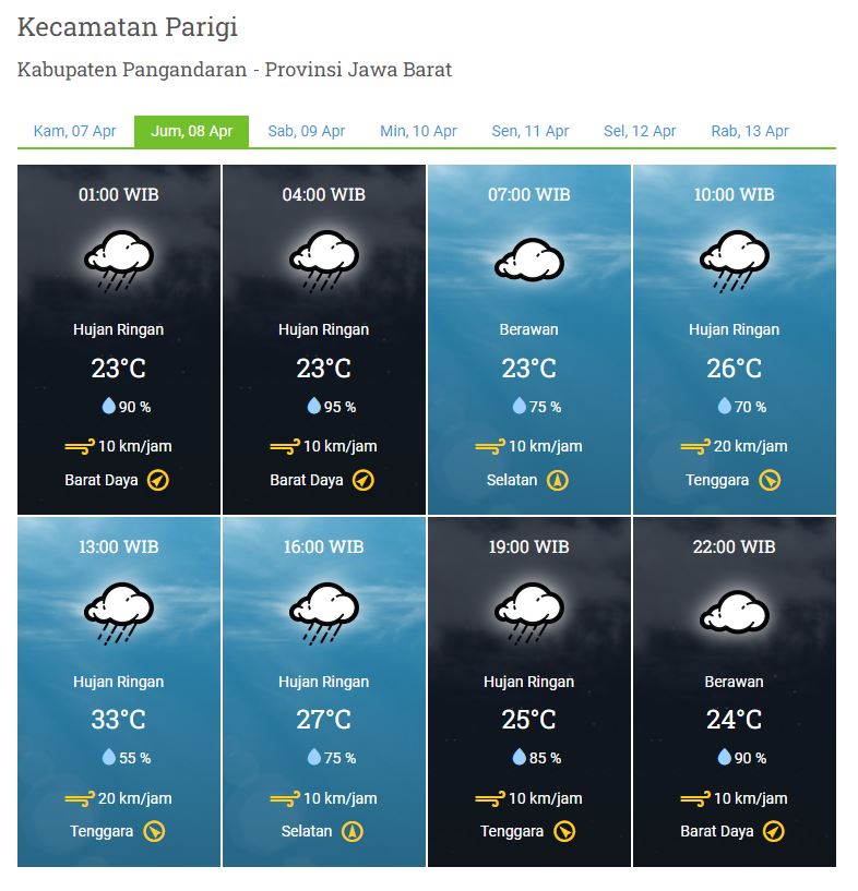 Laporan Harian & Prakiraan Cuaca Kabupaten Pangandaran – Jum’at, 08 April 2022