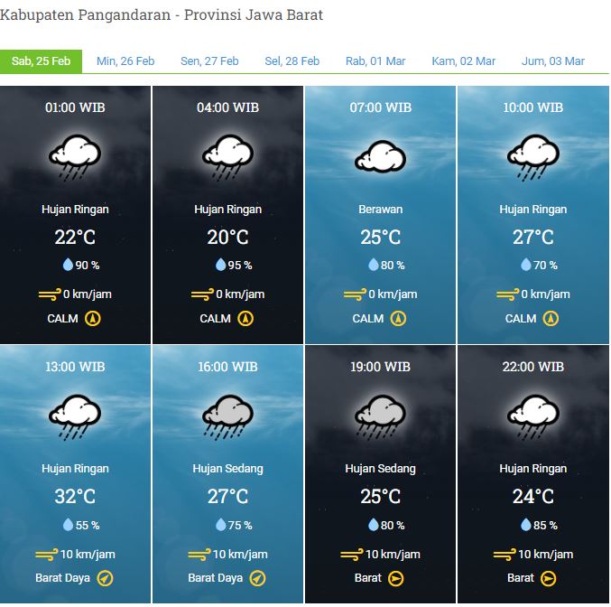 Laporan Harian & Prakiraan Cuaca Kabupaten Pangandaran – Sabtu, 25 Februari 2023