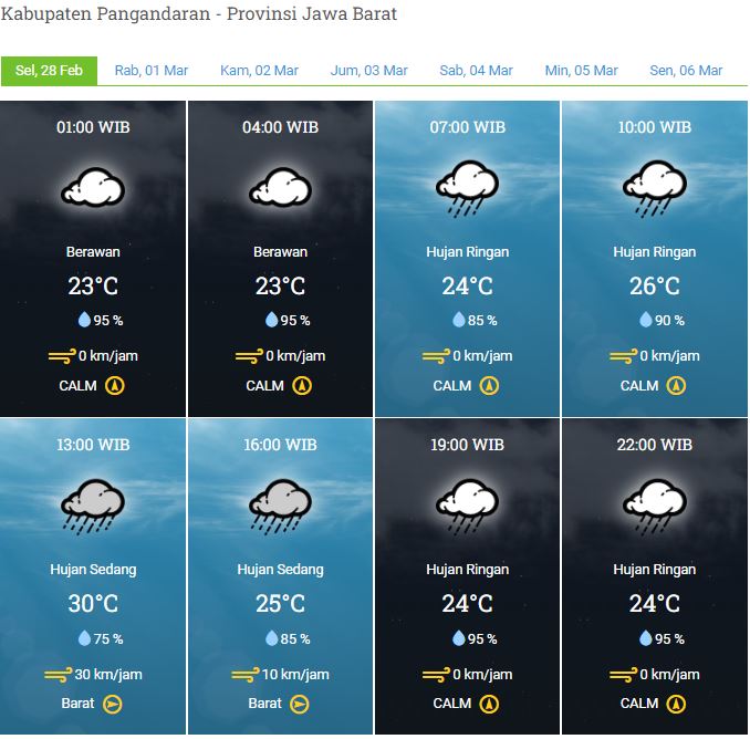Laporan Harian & Prakiraan Cuaca kabupaten Pangandaran – Selasa, 28 Februari 2023