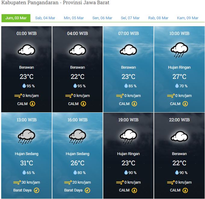 Laporan Harian & Prakiraan Cuaca Kabupaten Pangandaran – Jum’at, 03 Maret 2023