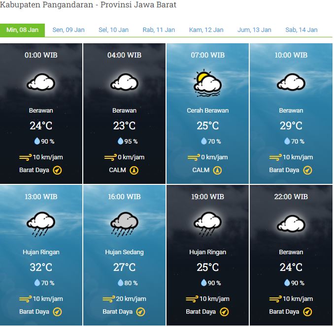 Laporan Harian & Prakiraan Cuaca Kabupaten Pangandaran – Minggu, 08 Januari 2023