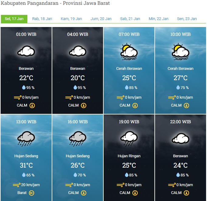 Laporan Harian & Prakiraan Cuaca Kabupaten Pangandaran – Selasa, 17 Januari 2023