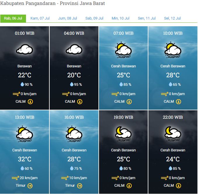 Laporan Harian & Prakiraan Cuaca Kabupaten Pangandaran – Rabu, 06 Juli 2022