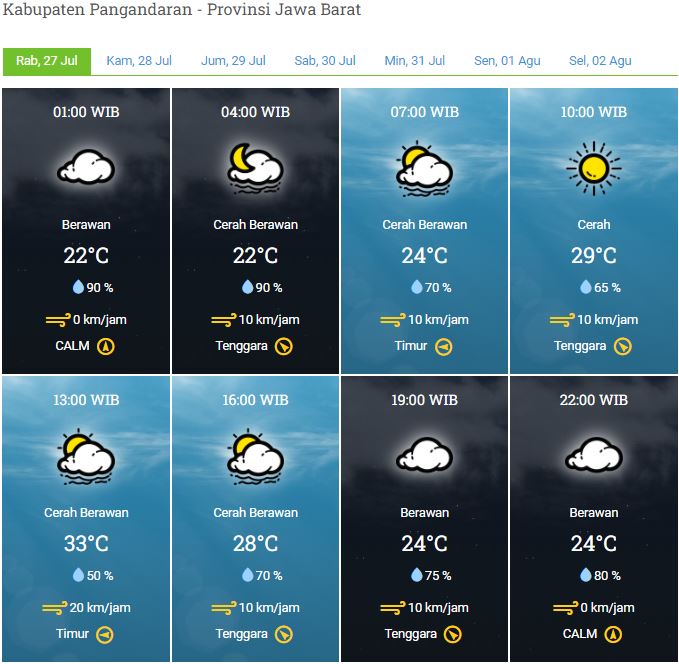 Laporan Harian & Prakiraan Cuaca Kabupaten Pangandaran – Rabu, 27 Juli 2022
