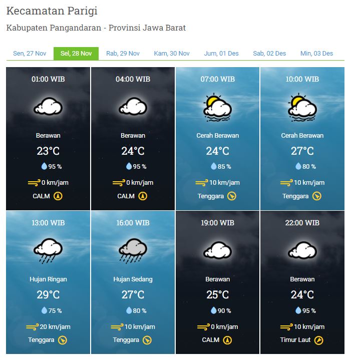 Laporan Harian & Prakiraan Cuaca Kabupaten Pangandaran – Selasa, 28 November 2023
