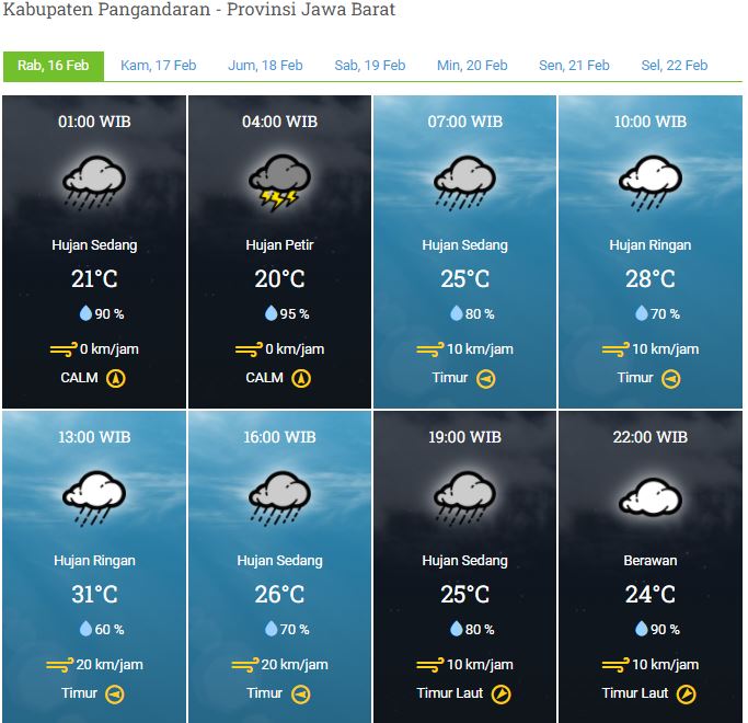 Laporan Harian & Prakiraan Cuaca Kabupaten Pangandaran – Rabu, 16 Februari 2022
