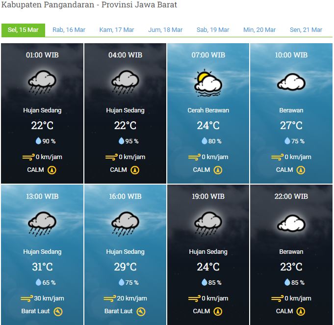 Laporan Harian & Prakiraan Cuaca Kabupaten Pangandaran – Selasa, 15 Maret 2022