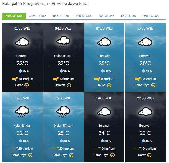 Laporan Harian & Prakiraan Cuaca Kabupaten Pangandaran – Kamis, 30 Desember 2021