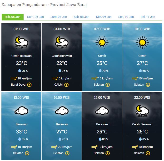 Laporan Harian & Prakiraan Cuaca Kabupaten Pangandaran – Rabu, 05 Januari 2022