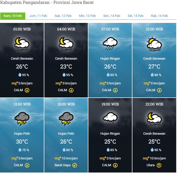 Laporan Harian & Prakiraan Cuaca Kabupaten Pangandaran – Kamis, 10 Februari 2022