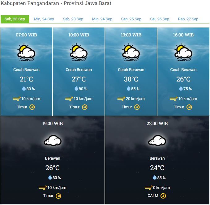 Laporan Harian & Prakiraan Cuaca Kabupaten Pangandaran – Rabu, 20 September 2023