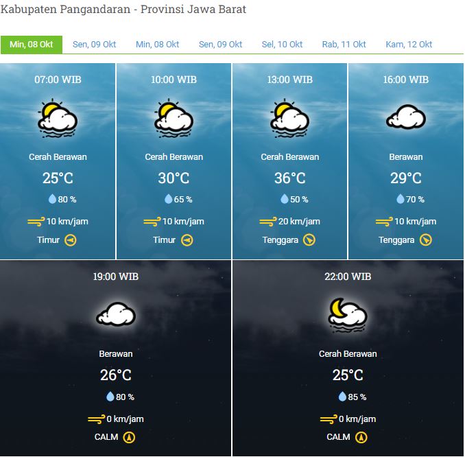 Laporan Harian & Prakiraan Cuaca Kabupaten Pangandaran – Minggu, 08 Oktober 2023