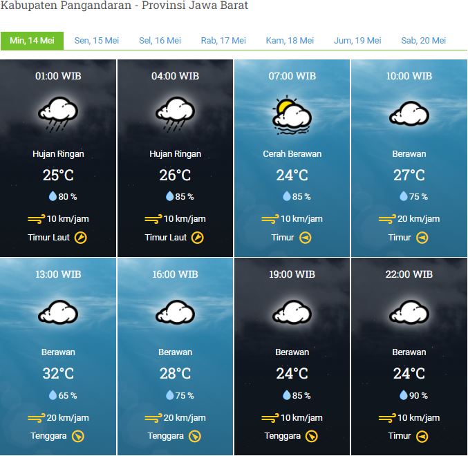 Laporan Harian & Prakiraan Cuaca Kabupaten Pangandaran – Minggu, 14 Mei 2023
