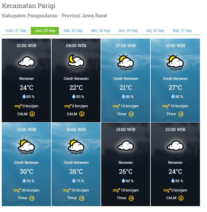 Laporan Harian & Prakiran Cuaca Kabupaten Pangandaran – Jumat, 22 September 2023