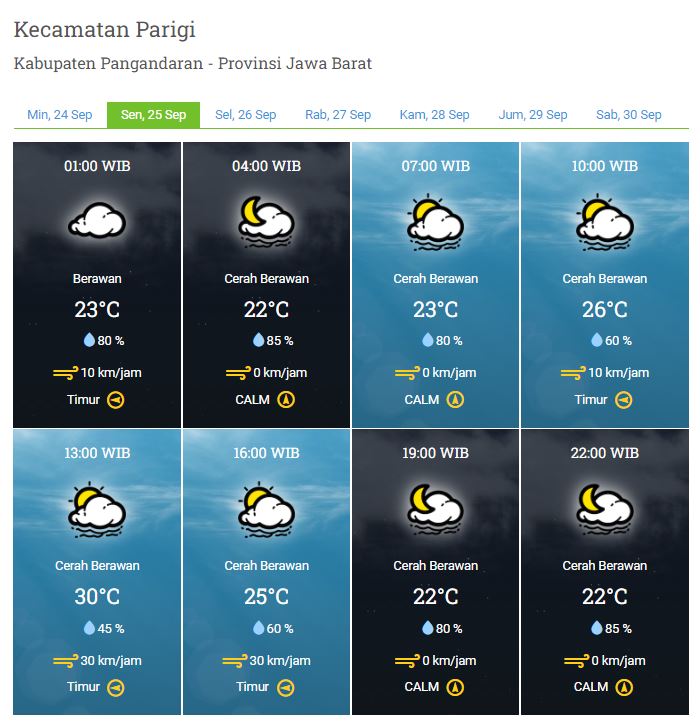 Laporan Harian & Prakiraan Cuaca Kabupaten Pangandaran – Senin, 25 September 2023