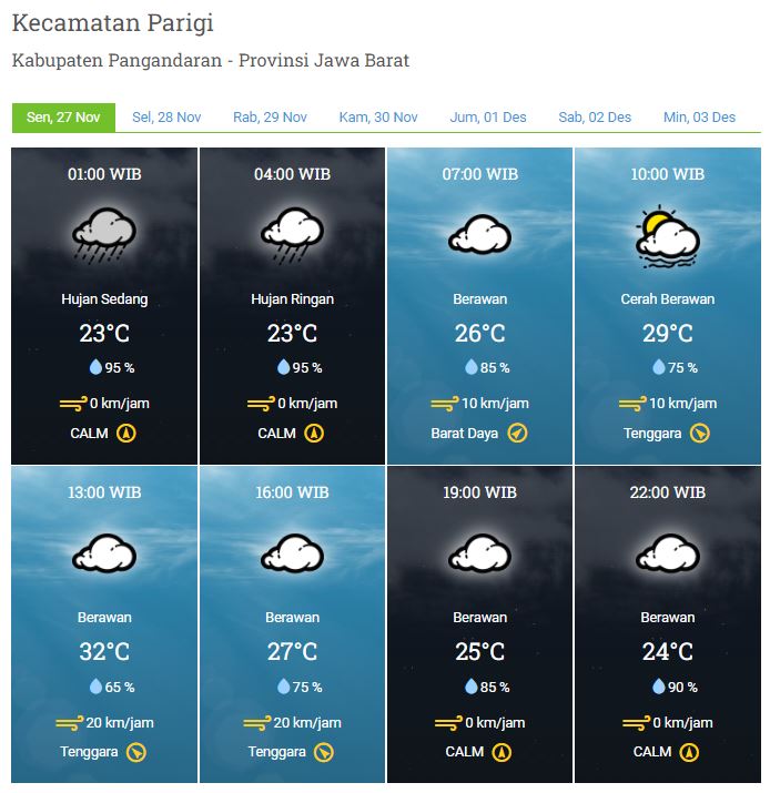 Laporan Harian & Prakiraan Cuaca Kabupaten Pangandaran – Senin, 27 November 2023