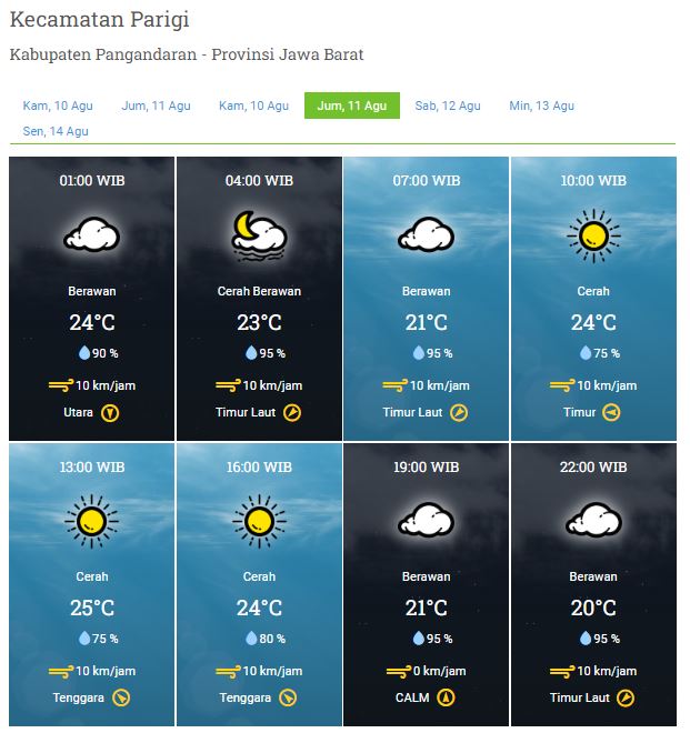 Laporan Harian & Prakiraan Cuaca Kabupaten Pangandaran – Jumat, 11 Agustus 2023