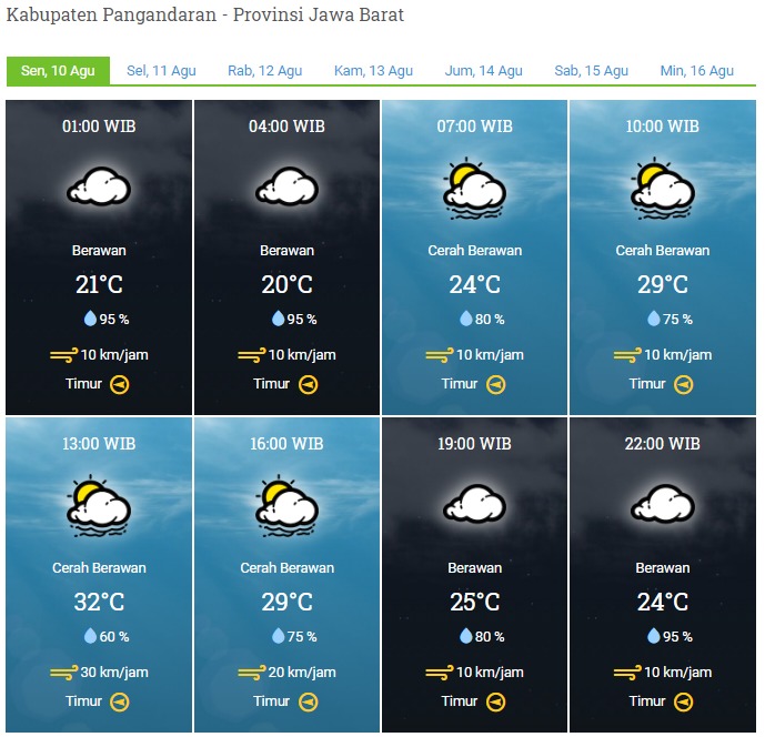 LAPORAN HARIAN DAN PRAKIRAAN CUACA KABUPATEN PANGANDARAN, SENIN 10 AGUSTUS 2020