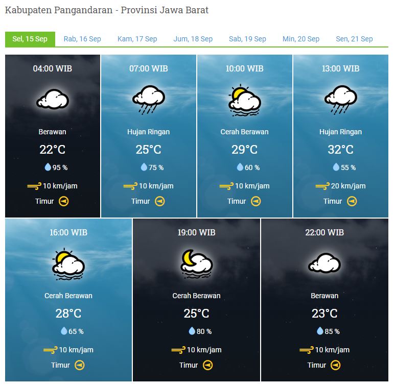 Laporan Harian Dan Prakiraan Cuaca Kabupaten Pangandaran, Selasa 15 September 2020