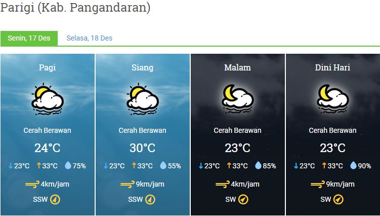 Laporan Harian Dan Prakiraan Cuaca Kabupaten Pangandaran – Senin, 17 Desember 2018