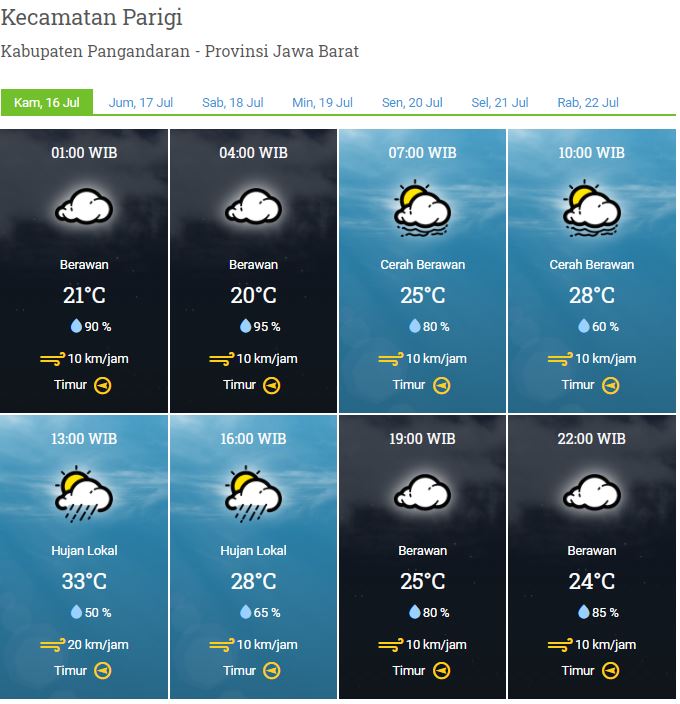 Laporan Harian & Prakiraan Cuaca Kabupaten Pangandaran – Kamis, 16 Juli 2020