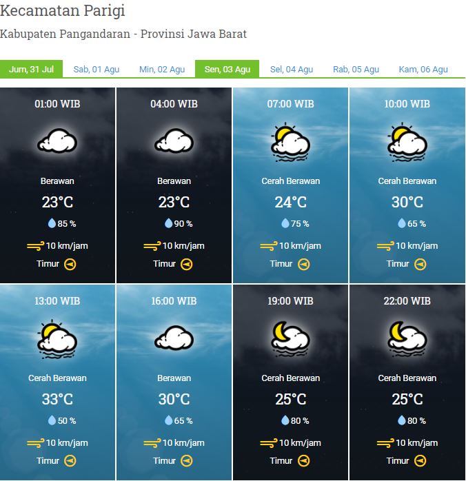 LAPORAN HARIAN & PRAKIRAAN CUACA KABUPATEN PANGANDARAN – JUM’AT, 31 JULI 2020