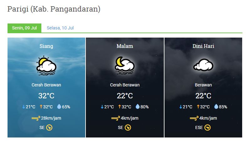 Laporan harian Dan Prakiraan Cuaca Kabupaten Pangandaran Senin, 09 Juli 2018
