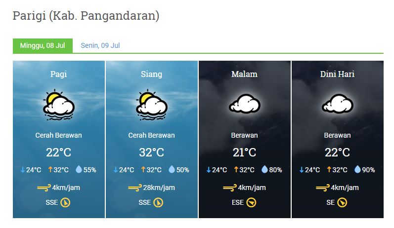 Laporan Harian Dan Prakiraan Cuaca Kabupaten Pangandaran Minggu, 08 Juli 2018