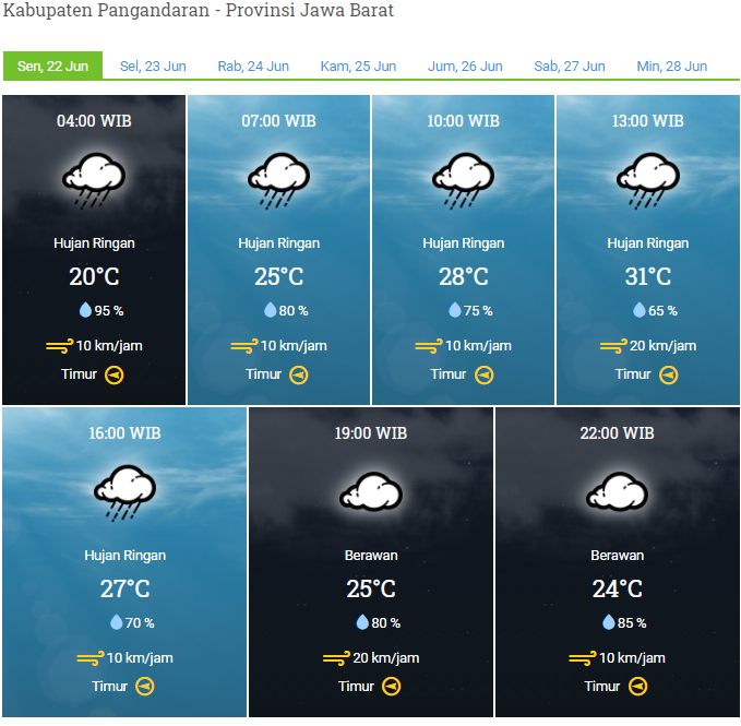 Laporan Harian Dan Prakiraan Cuaca Kabupaten Pangandaran Senin, 22 Juni 2020