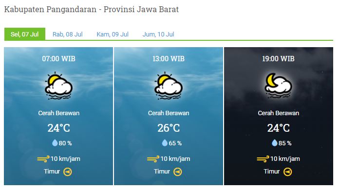 Laporan Harian & Prakiraan Cuaca Kabupaten Pangandaran – Selasa, 07 Juli 2020