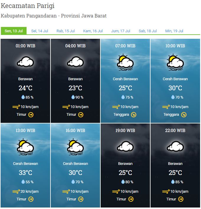 Laporan Harian & Prakiraan Cuaca Kabupaten Pangandaran – Senin, 13 Juli 2020