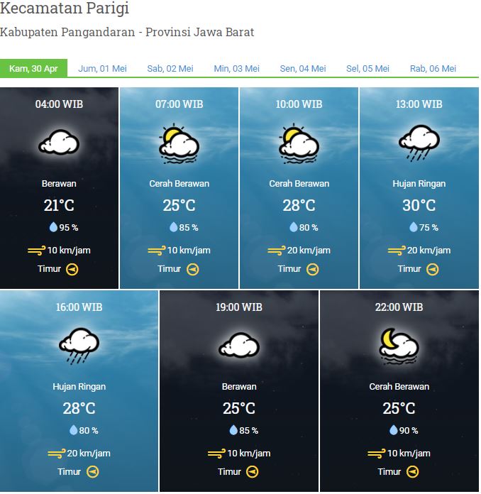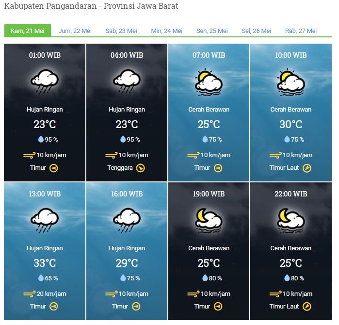 Laporan Harian Dan Prakiraan Cuaca Kabupaten Pangandaran, Kamis 21 Mei 2020