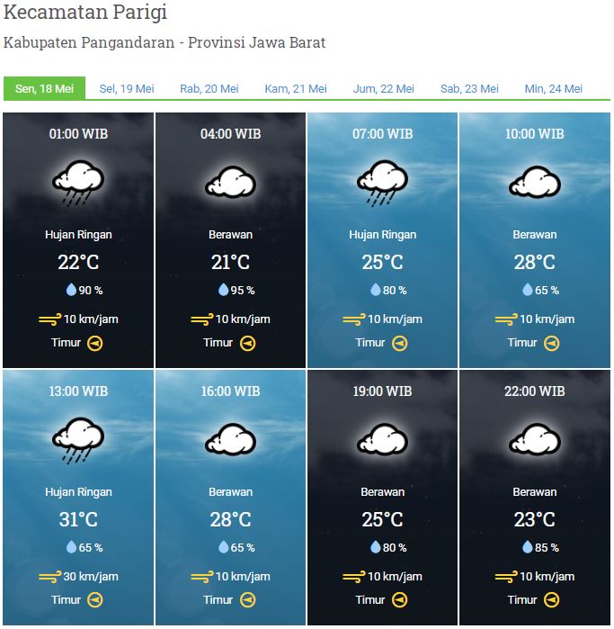 Laporan Harian Dan Prakiraan Cuaca Kabupaten Pangandaran Senin, 18 Mei 2020