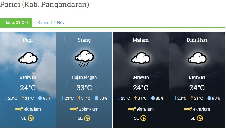 Laporan Harian Dan Prakiraan Cuaca Kabupaten Pangandaran – Rabu, 31 Oktober 2018