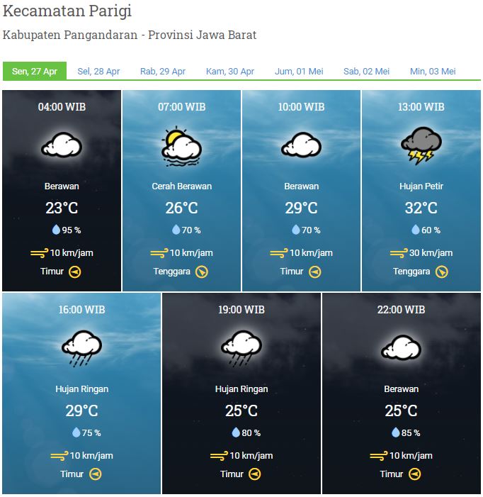 Laporan Harian Dan Prakiraan Cuaca Kabupaten Pangandaran Senin, 27 April 2020