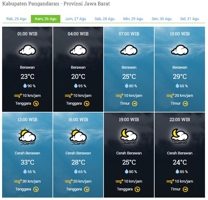Laporan Harian & Prakiraan Cuaca Kabupaten Pangandaran – Kamis, 26 Agustus 2021