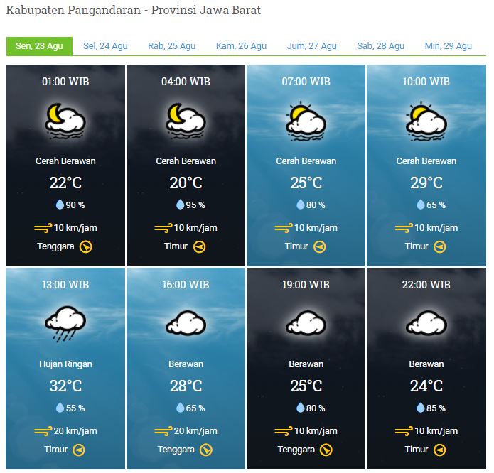 Laporan Harian & Prakiraan Cuaca Kabupaten Pangandaran – Senin, 23 Agustus 2021