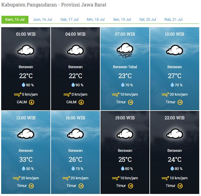 Laporan Harian & Prakiraan Cuaca Kabupaten Pangandaran – Kamis, 15 Juli 2021