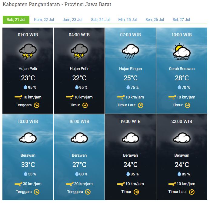 Laporan Harian & Prakiraan Cuaca Kabupaten Pangandaran – Rabu, 21 Juli 2021