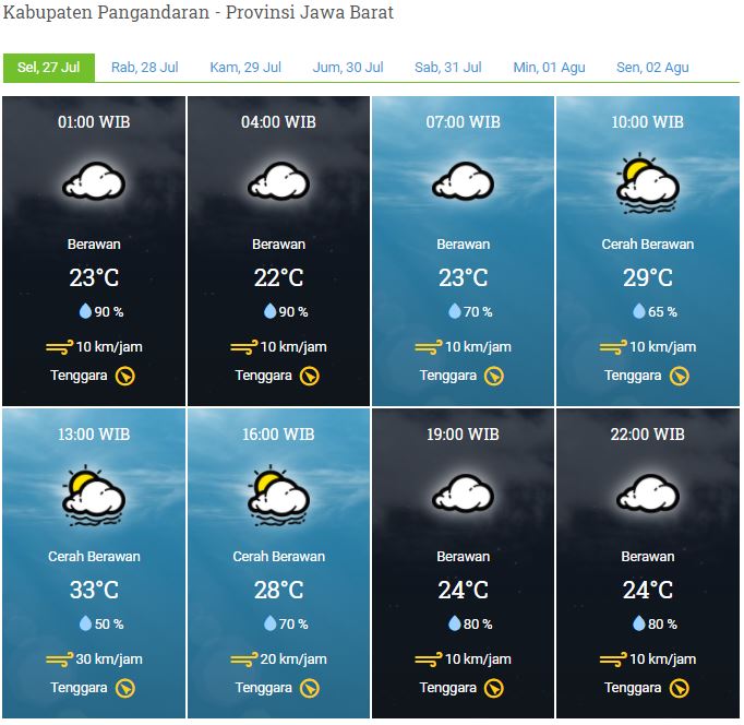 Laporan Harian & Prakiraan Cuaca Kabupaten Pangandaran – Selasa, 27 Juli 2021