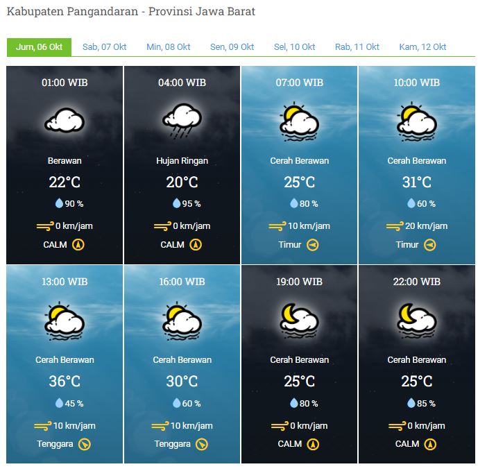 Laporan Harian & Prakiraan Cuaca Kabupaten Pangandaran – Jumat, 06 Oktober 2023