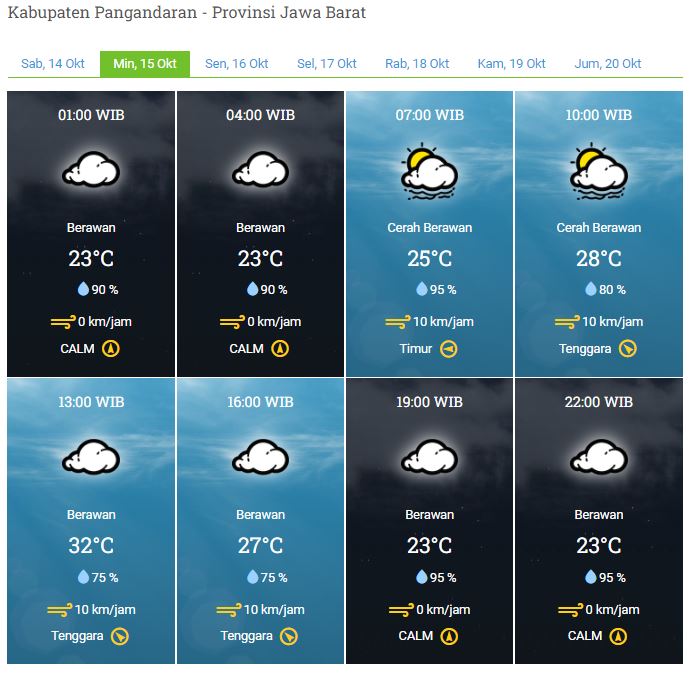 Laporan Harian & Prakiraan Cuaca Kabupaten Pangandaran – Minggu, 15 Oktober 2023