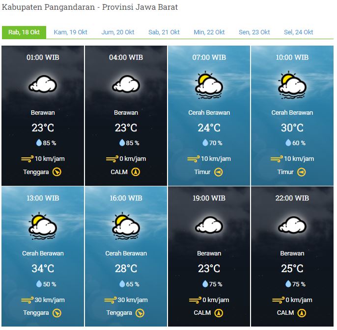 Laporan Harian & Prakiraan Cuaca Kabupaten Pangandaran – Rabu, 18 Oktober 2023
